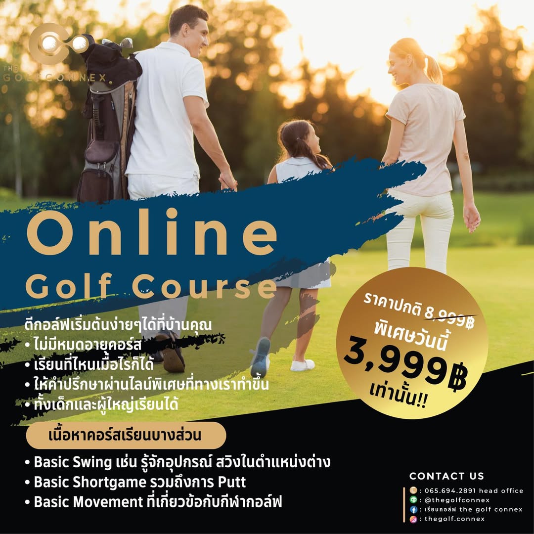 คอร์สเรียนกอล์ฟเบสิคออนไลน์ อยู่ที่ไหนก็สามารถเรียนได้ เด็กหรือผู้ใหญ่ก็เริ่มเรียนได้ นำไปฝึกเองได้ ไม่ว่าคุณจะติดตาม The Golf Connex อยู่ที่ภูมิลำเนาใด คุณจะใกล้ชิดกับเราได้มากขึ้น